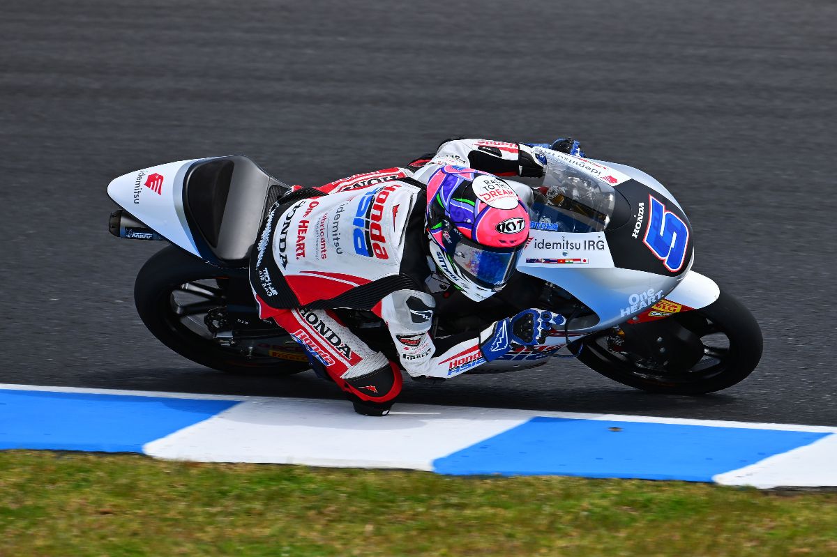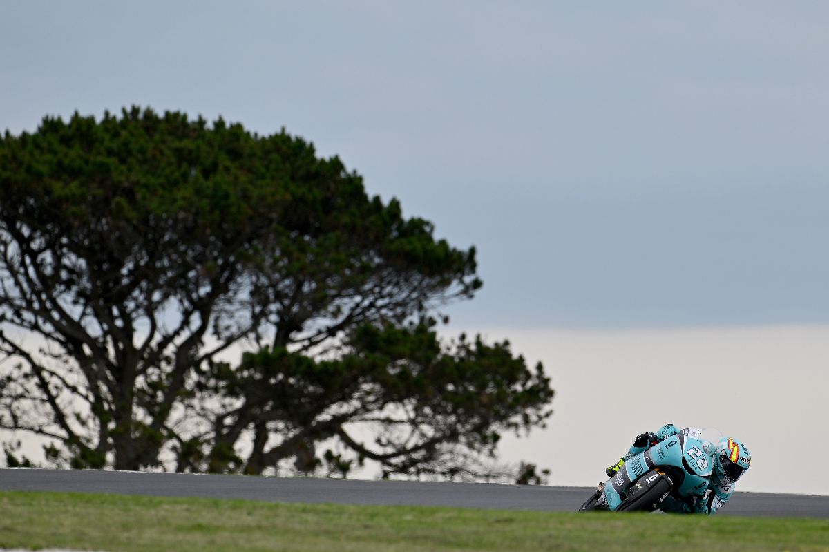 Jacob Roulstone (Red Bull KTM Tech3) made it two Australians in the top four by Lap 3 after setting the fastest lap of the race, before his home Grand Prix ended prematurely at Turn 6 on Lap 4. At the front, Kelso and Rueda were 2.4s clear, as Angel Piqueras (FRINSA – MT Helmets – MSI) had a huge moment at the final corner. It cost the Spaniard roughly seven seconds as he took a trip through the gravel trap and grass, but he kept his KTM upright – now though, the rider second in the Championship was P24.